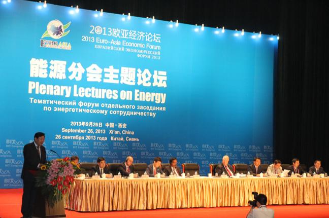9月26日,2013歐亞經(jīng)濟(jì)論壇能源分會及主題論壇在曲江國際會議中心大禮堂拉開帷幕。本次分會圍繞新能源及技術(shù)、低碳經(jīng)濟(jì)和生態(tài)環(huán)境等主題展開研討。副省長李金柱出席并致辭。石羊集團(tuán)做為西安經(jīng)開區(qū)企業(yè)代表在集團(tuán)項(xiàng)目投資部總經(jīng)理傅巧艷及總裁助理趙超的帶領(lǐng)下一行7人參加了此次盛會。