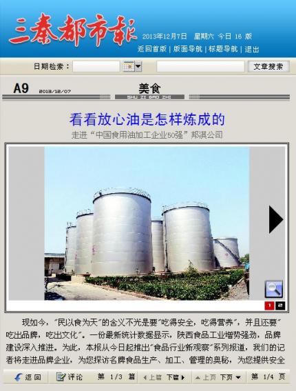 現如今,"民以食為天"的含義不光是要"吃得安全,吃得營養",并且還要"吃出品牌,吃出文化"。一份最新統計數據顯示,陜西食品工業增勢強勁,品牌建設深入推進。為此,本報從今日起推出"食品行業新觀察"系列報道,我們的記者將走進品牌企業,為您探訪名牌食品生產、加工、管理的奧秘,為您提供安全消費、放心消費、健康消費、時尚消費指南。今日首期推出來自西安邦淇制油科技有限公司和多美滋嬰幼兒食品有限公司的報道。