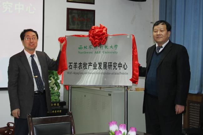 4月2日下午,石羊集團與西北農(nóng)林科技大學動物科技學院在動科學院一樓會議室舉行“西北農(nóng)林科技大學-石羊農(nóng)牧產(chǎn)業(yè)發(fā)展研究中心”揭牌儀式,集團總裁常青山、副總裁兼農(nóng)牧產(chǎn)業(yè)總經(jīng)理韓春元、飼料事業(yè)部總經(jīng)理李鵬華、西北農(nóng)林科技大學校長助理、國家“千人計劃”入選者趙辛教授、教務處處長陳玉林教授、學校科研處孫楠副處長、動科學院院長姚軍虎教授、書記閆祖書老師、呼天明副院長、孫超副院長等20多名專家學者參加了揭牌儀式。揭牌儀式由閆祖書書記主持。