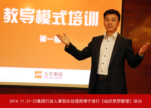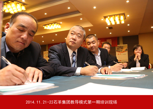 11月20日—22日,石羊集團教導培訓第一期在未央湖畔的度假酒店成功舉行。按集團董事長魏存成在2014年第三季度經營檢討會上的部署,本次活動旨在向各事業部主管級以上人員傳達、推廣教導模式。此次培訓得到了大量教導家人的支持,現場邀請到師道書院汪蓉老師,同時還感召到王亞妮、丘煒等企業家人作為教導員。此次培訓學員分別來自匯邦地產、金融、農牧、大食品及外部學員共計75人,培訓導師、教導團和小天使人員30余人。