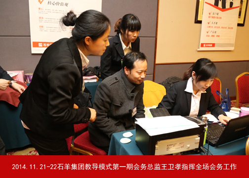 培訓活動開始前,擔任此次培訓班主任的石羊酒業銷售副總賈鎖斌,對教導團成員進行定向,同時小天使完成場內活動安排。20日下午15時學員陸續報到并領取名牌。