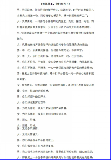 18點30分,大會圓滿落下帷幕,讓我們共同祝愿涇河食品公司,再創(chuàng)佳績,祝愿公司在大家的共同努力下,更上一層樓。