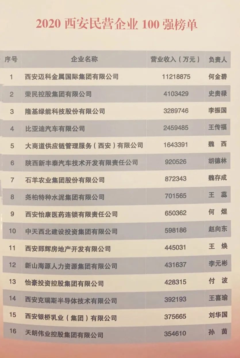 會上,還發布了2020西安民營企業100強榜單,石羊農業集團股份有限公司以營業收入872343萬元位列第七。