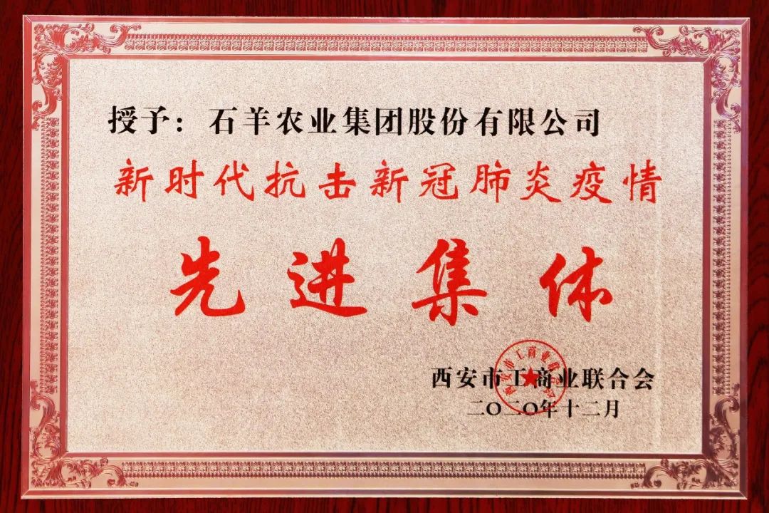 同日,西安市工商業聯合會成立70周年紀念大會暨十四屆四次執委會議上傳來喜報,石羊集團被授予新時代抗擊新冠肺炎疫情先進集體和新時代助力民生發展先進集體殊榮。