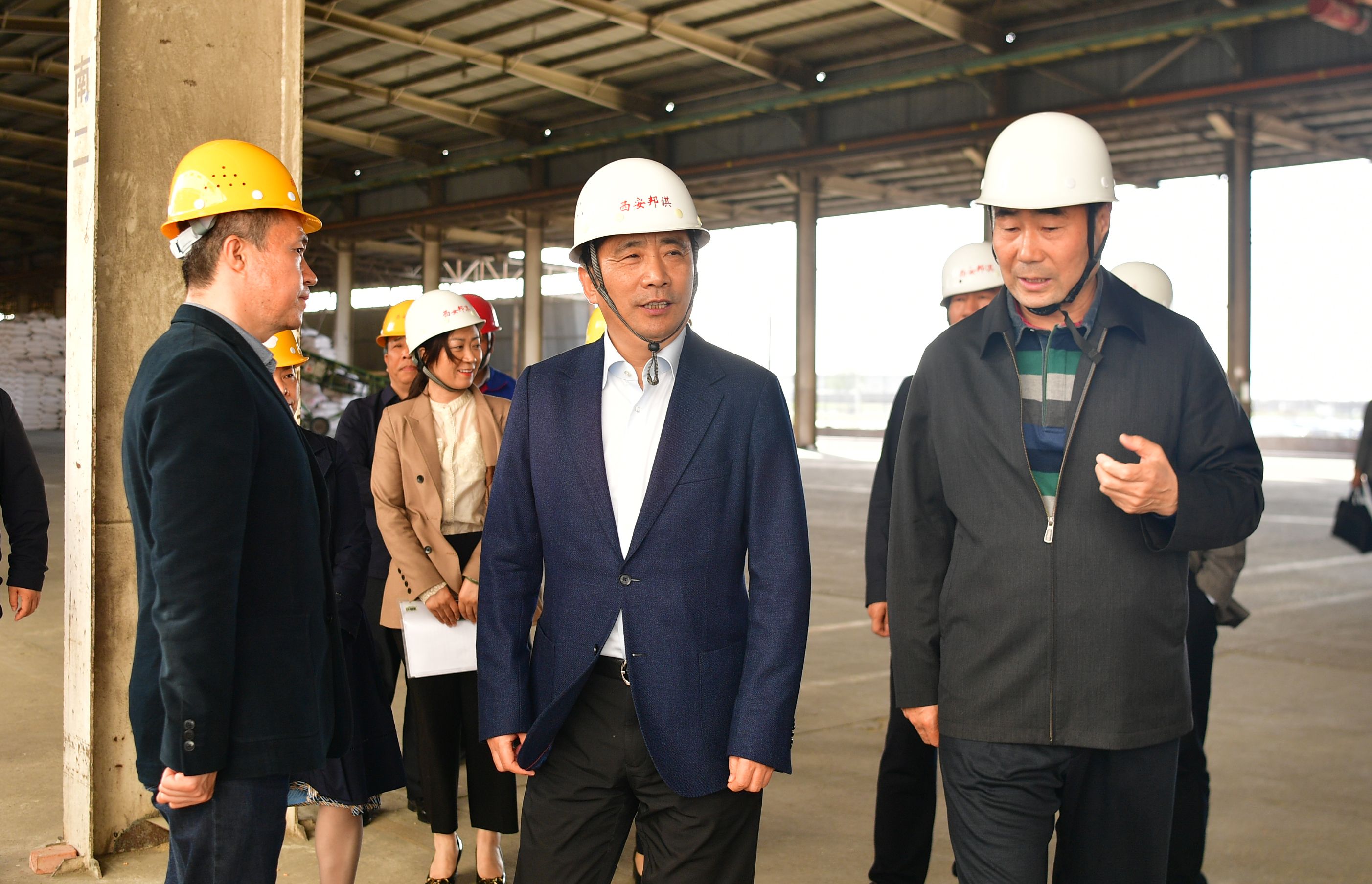 李明遠一行來到石羊集團西安邦淇,認真聽取了集團黨委書記、董事長魏存成關于企業生產經營情況的介紹,觀摩了100萬噸植物蛋白加工產業項目進展并詳細詢問原料來源、產品銷售、交通物流等情況。