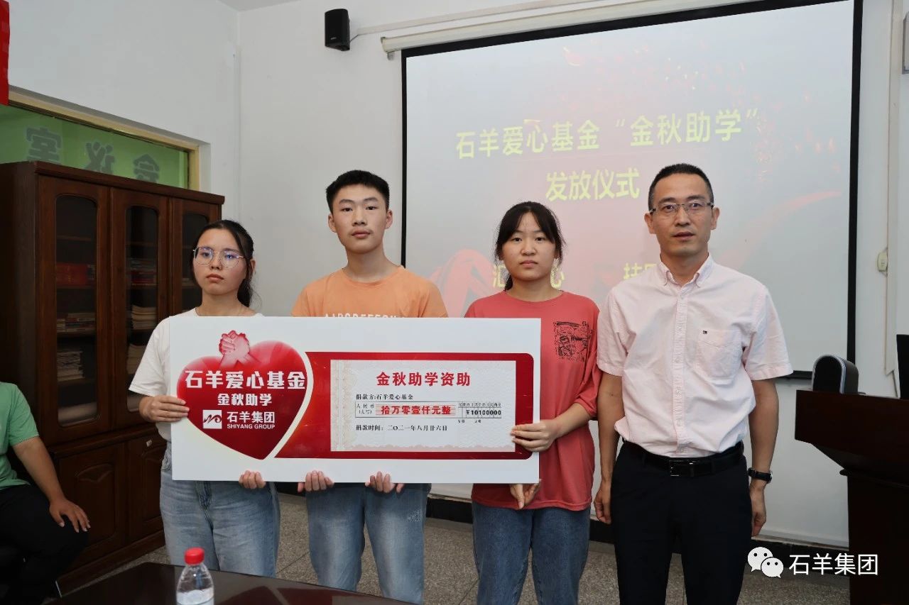 一年一度的石羊愛心基金“金秋助學”活動在西安邦淇公司拉開帷幕,經愛心基金管理委員會篩選審核,本年度為25名困難員工子女及上下游困難客戶子女發放助學金101000元。